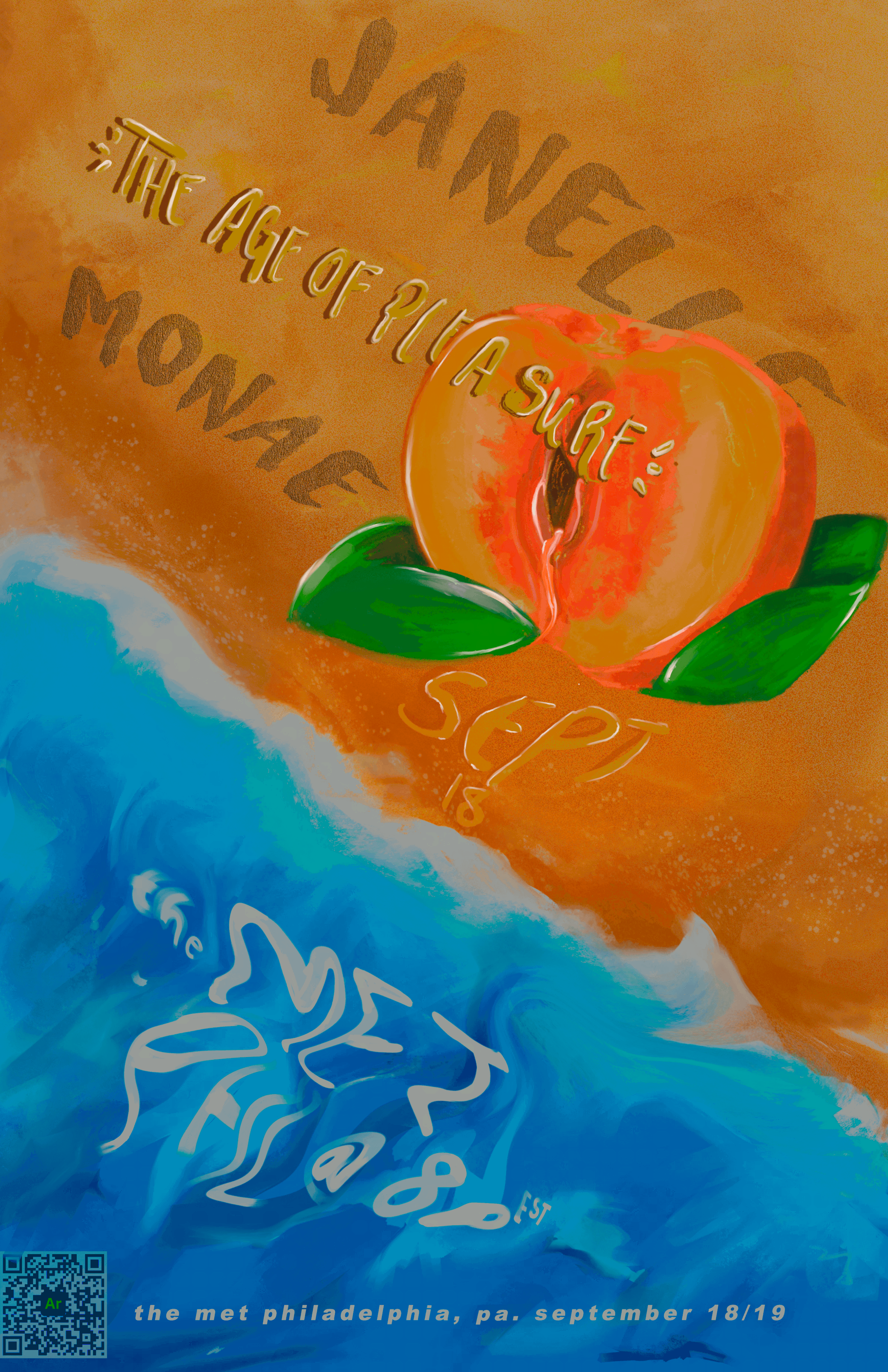 In my first semester of junior year of 2023, I took my first stab at creating an interactive augmented reality poster. I chose the artist, Janelle Monáe as my muse. Monáe and her music are both sexy, sensual, and free, bending the rules of genres of music while also catering to the Pan-African euphoria with love. The Age of Pleasure album inspired me to take a deep dive into my own sexuality and gender expression, and I explored sexual liberation for this project.